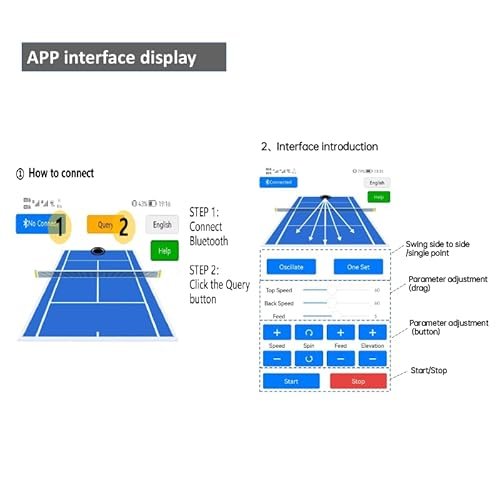 • 4.Control Options: It can be controlled via a remote control or an app, with functionalities including start/stop, ball speed, topspin and backspin, frequency, height, and oscillation.