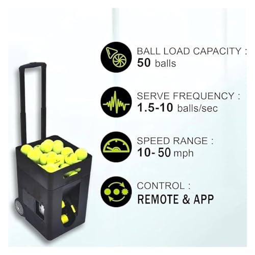 • Multi-Functional Training Device: Crafted from higher quality materials, this Tennis Ball Machine can hold up to 50 balls, serving as a reliable and portable training partner for both beginners and advanced players alike