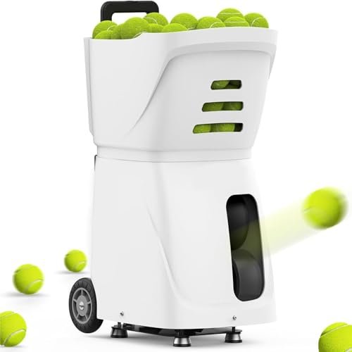MAHWER Tennis Ball Machine, 4-6 Hours Battery Life, 100 Ball Capacity, External Battery, Suitable for Tennis Training, Competitions, Teaching(White)