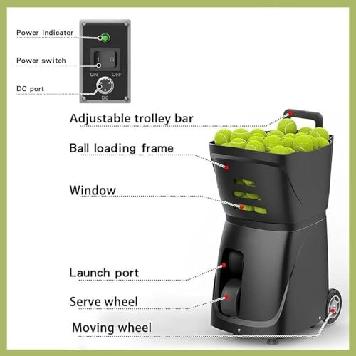 - ❤AUTOMATIC BALL LAUNCHER: This ball machine help you solve the problem of machine movement by attaching wheels to the bottom of the machine, so you can easily push it to your side. Suitable for players of different levels, helping you improve your skills