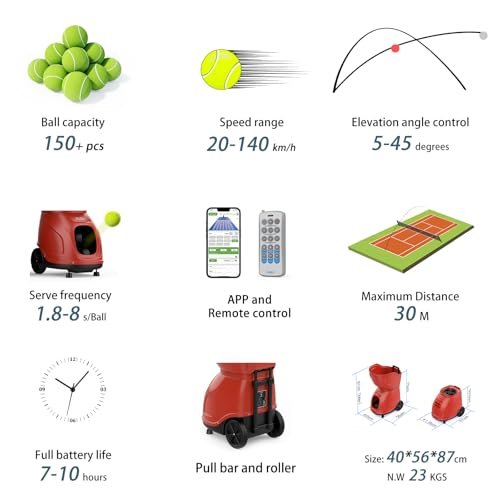 PT-9001Pro Tennis Ball Machine – Professional Tennis Server with APP Control, 35 Landing Points & Variable Speed, Portable Auto Ball Launcher with Extended Battery Life (7-10H Runtime) (Red)