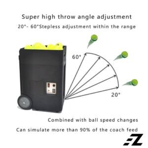 • Large Capacity Hopper: This tennis serving machine can hold up to 150+balls at once, no need to pick up the balls often. Built-in detachable battery, it can satisfy 7-10 hours tennis playing time. Smart App can monitor the battery suitation.