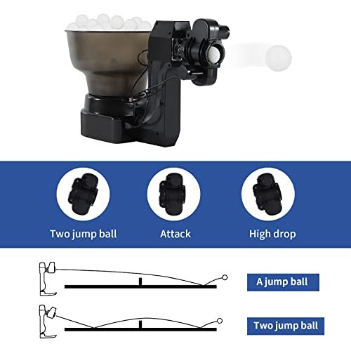 - 🏓【Spin Ball】: Ping pong robot can deliver 9 kinds of spinning ball, Double-end serve (optional single serve), falling point is not fixed. You can adjust top spin, backspin, as well as any combination of those and side spin. Also can adjust Jump ball :A jump ball/Two jump ball,Adjust the elevation of robot head:High drop/Attack the ball/Two jump ball.